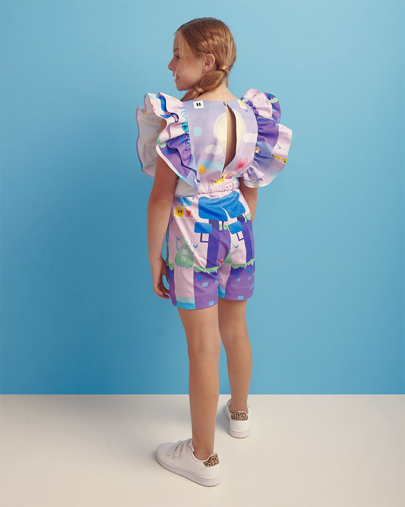 - Enterizo corto en drill con lazada en cintura para un mejor ajuste.